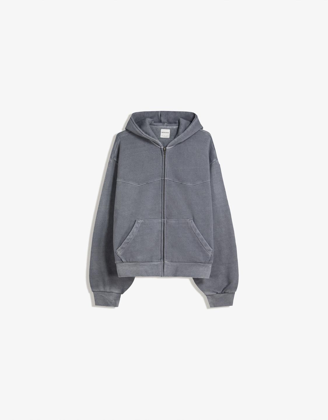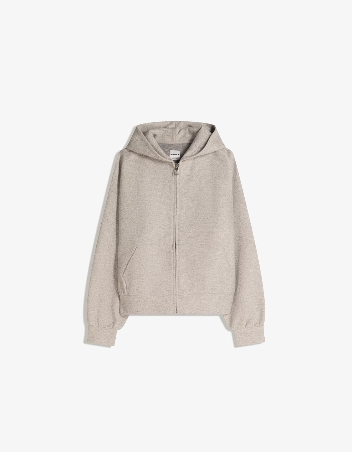 Felt texture zip-up hoodie