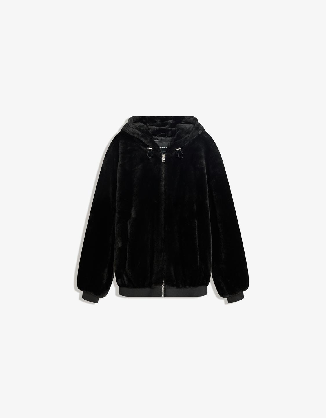 Hooded faux fur jacket