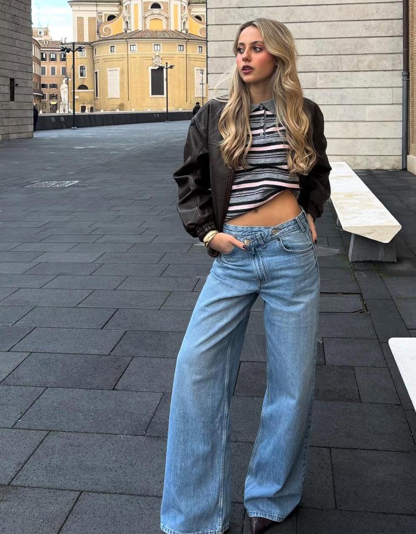 جينز بساق عريضة وخصر عالٍ وخصر متداخل
