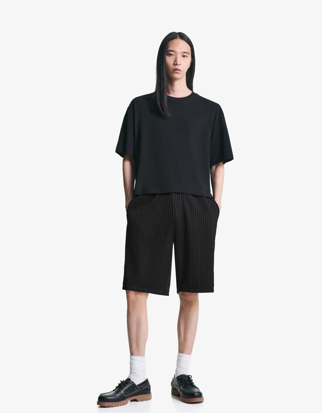 Oversize neoprene-effect Bermuda shorts