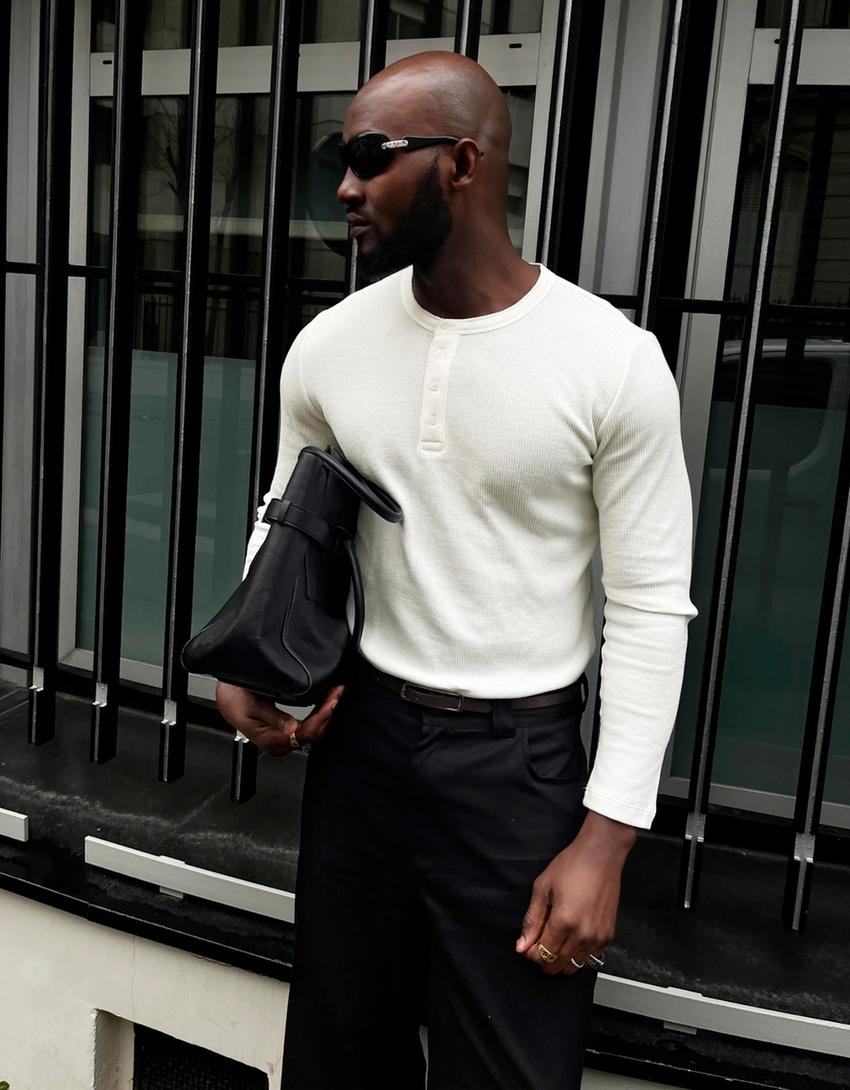 Camiseta manga longa henley slim fit