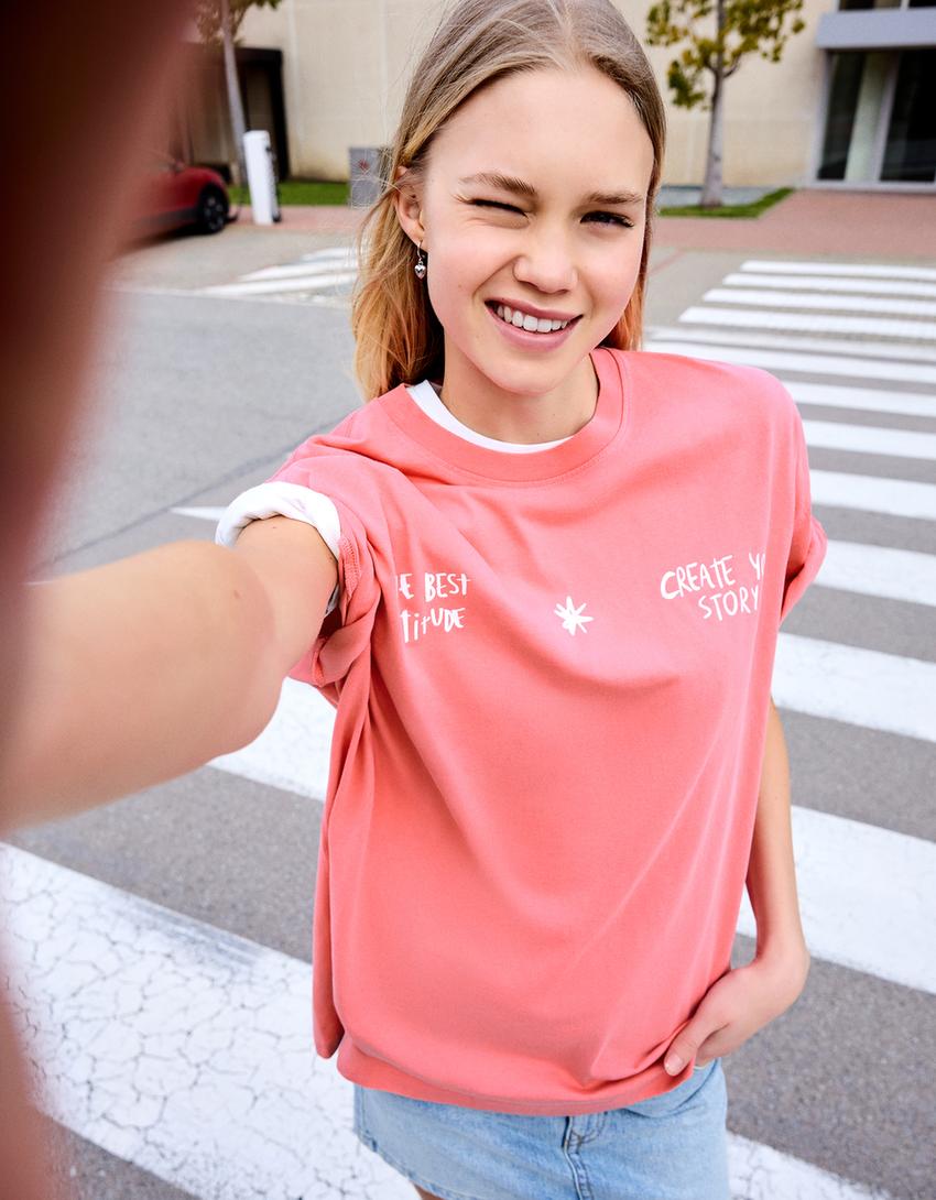 Lyhythihainen haalistettu T-paita