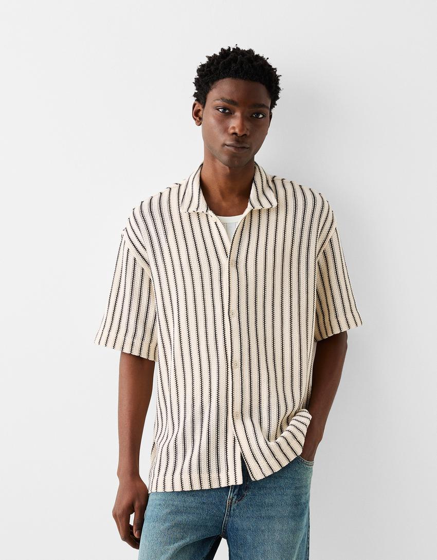 Chemise manches courtes texturée rayures