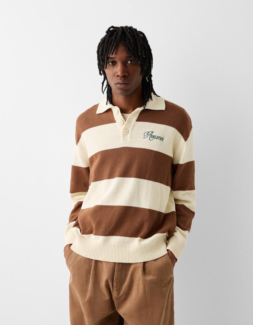 Pull col polo rayures broderie