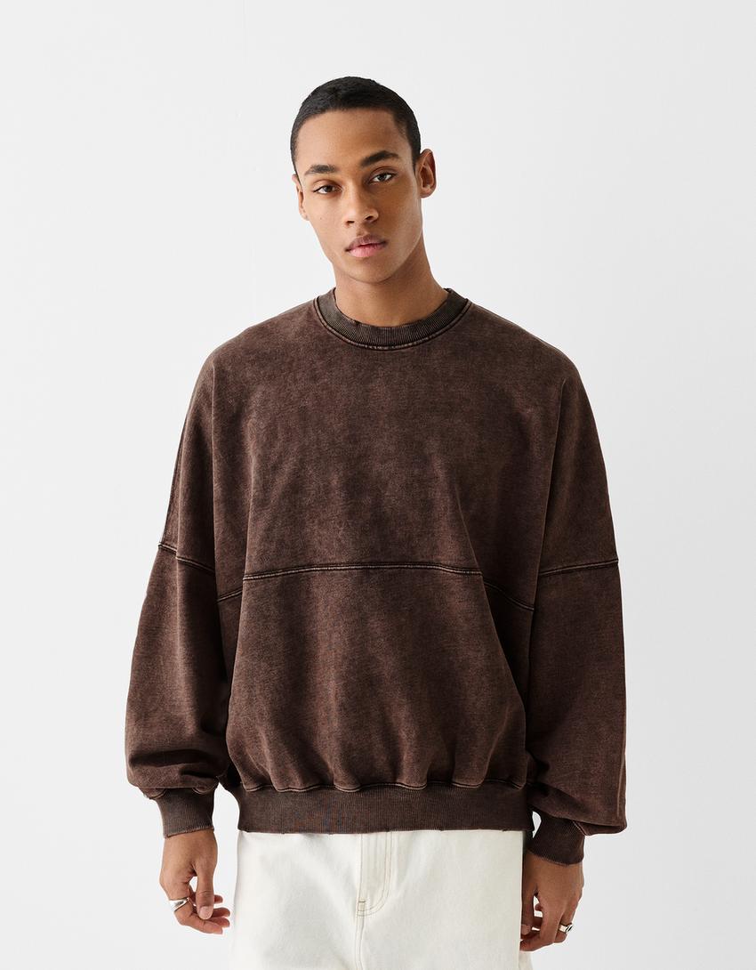 Sweat col rond effet délavé broderie