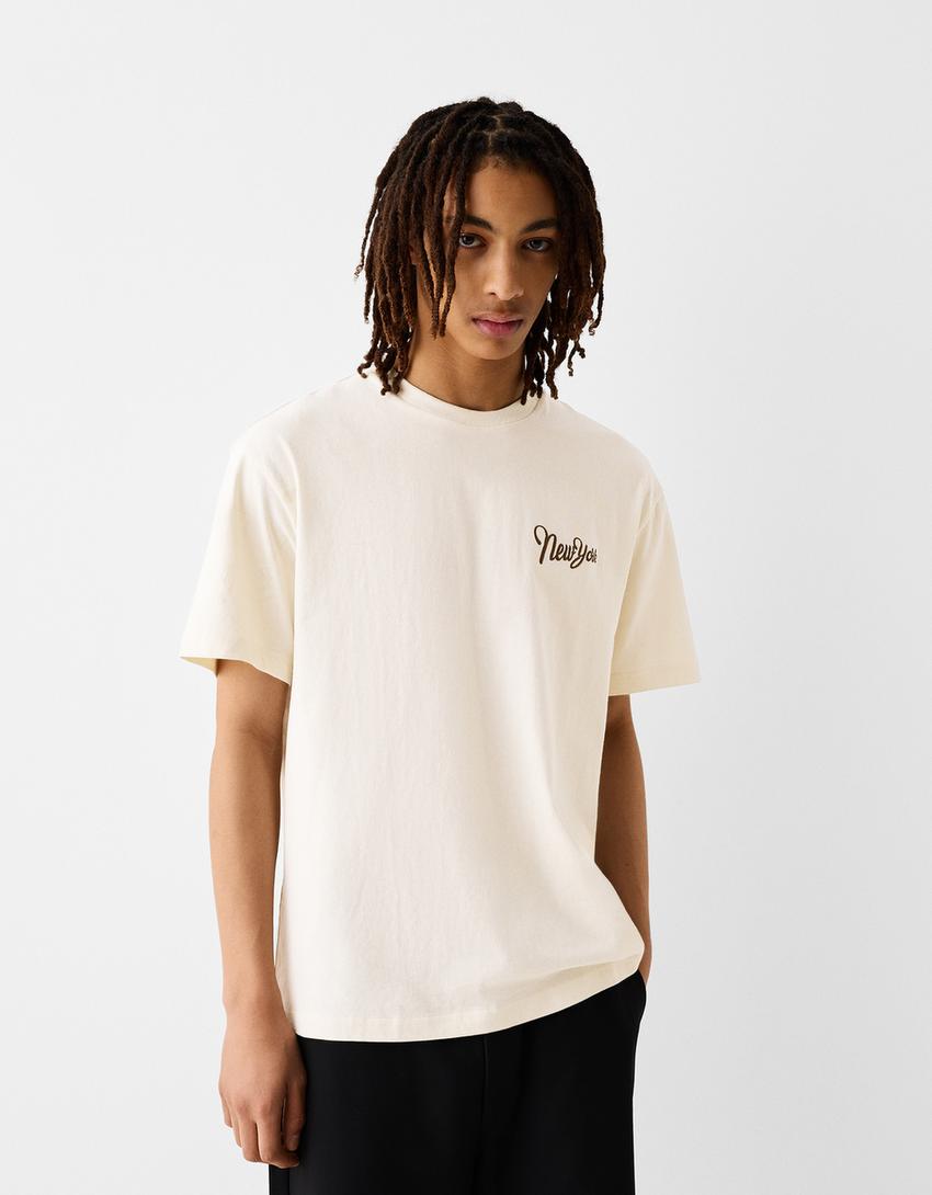T-shirt manches courtes boxy fit universitaire imprimé
