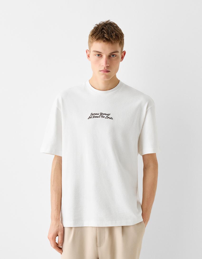 T-shirt manches courtes texturé broderie
