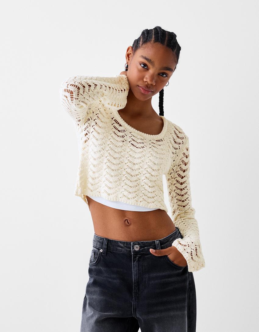 Open-knit scoop neck sweater