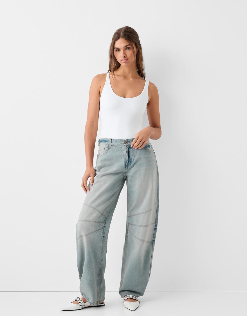 Low-waist balloon fit jeans with seams