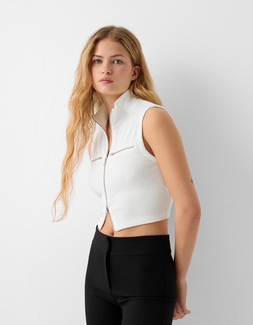 Cropped knit vest with a high neck and zip