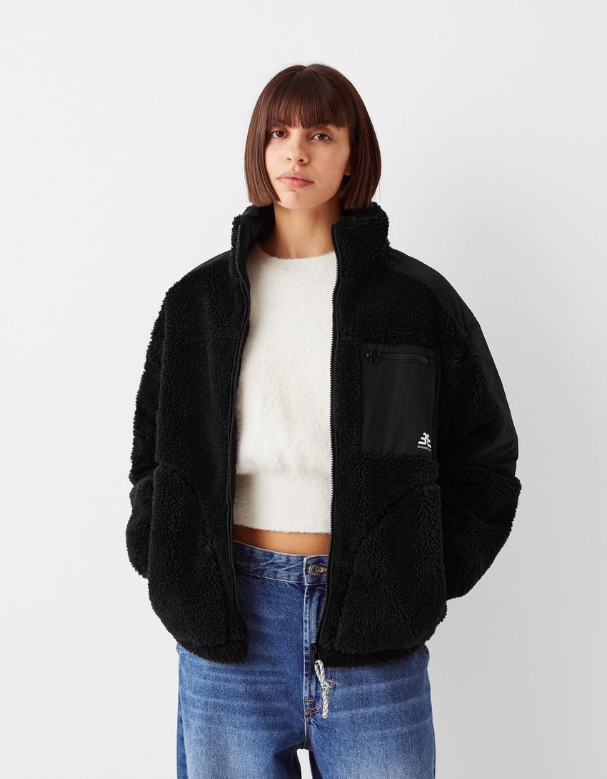 Contrast faux shearling nylon blend jacket