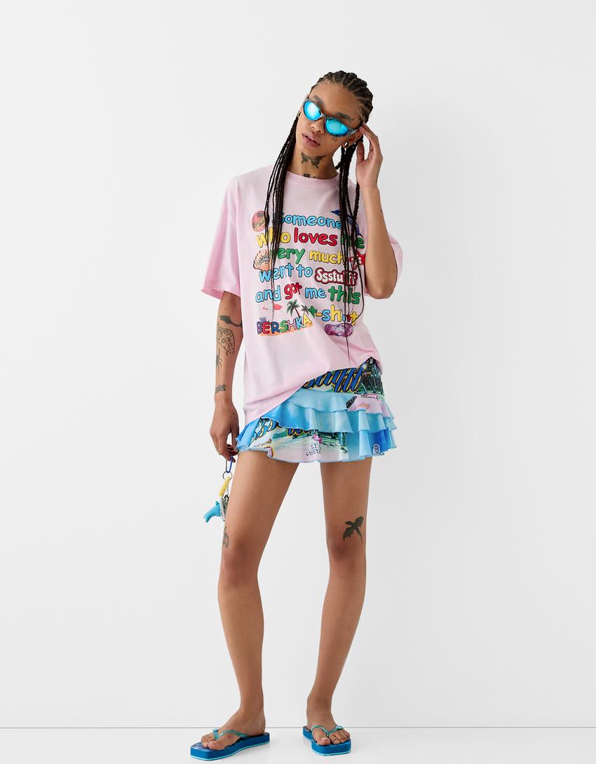 SSSTUFFF x BERSHKA print ruffled mini skirt