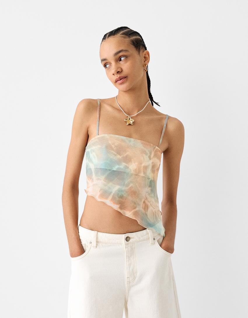 Asymmetric tulle top