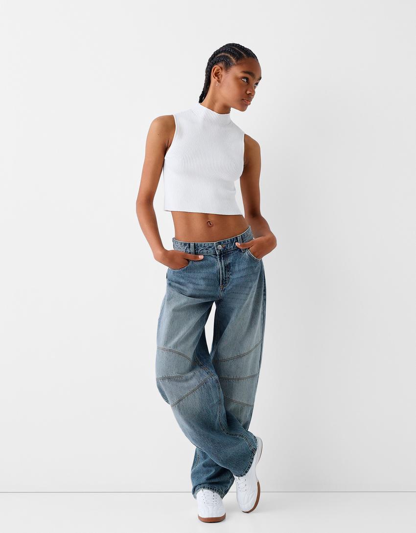 Low-waist balloon fit jeans with seams