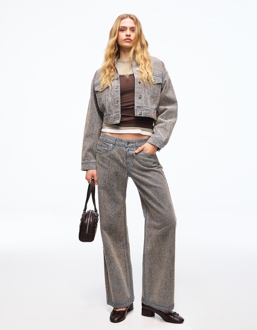 Τζάκετ denim cropped με ανάγλυφη υφή