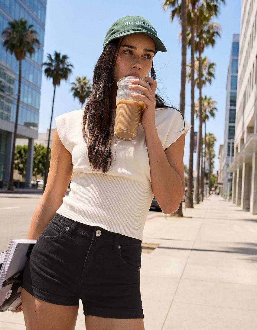 Denim roll-up shorts