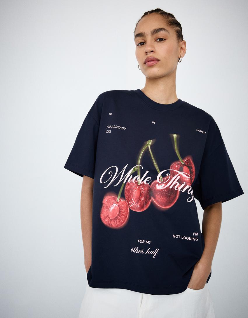 טי שירט עם הדפס ושרוול קצר