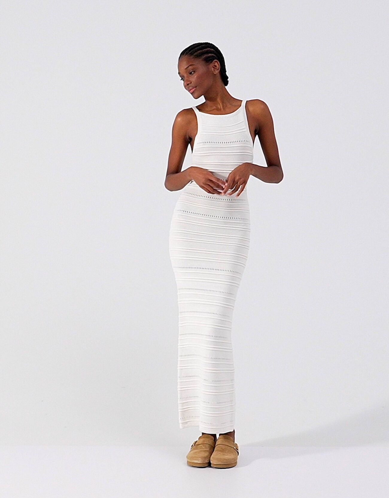 שמלת מידי עם כתפיות דקות באריגה משוחררת