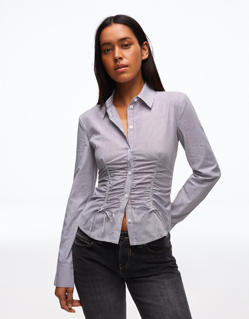 Gathered poplin shirt
