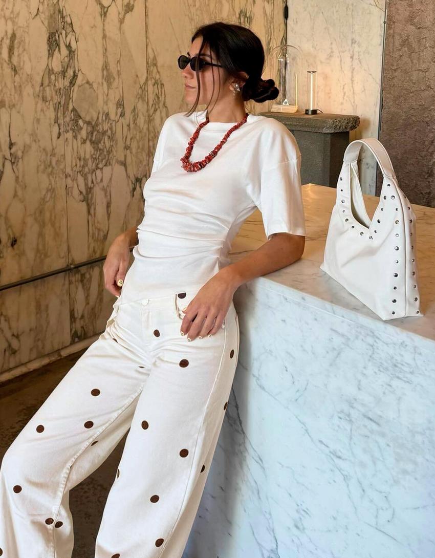 Wide-leg polka dot jeans