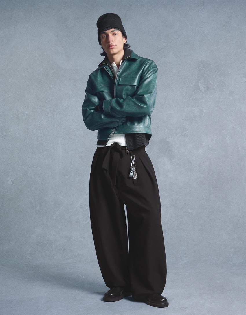Barrel-leg tailored fit trousers with belt