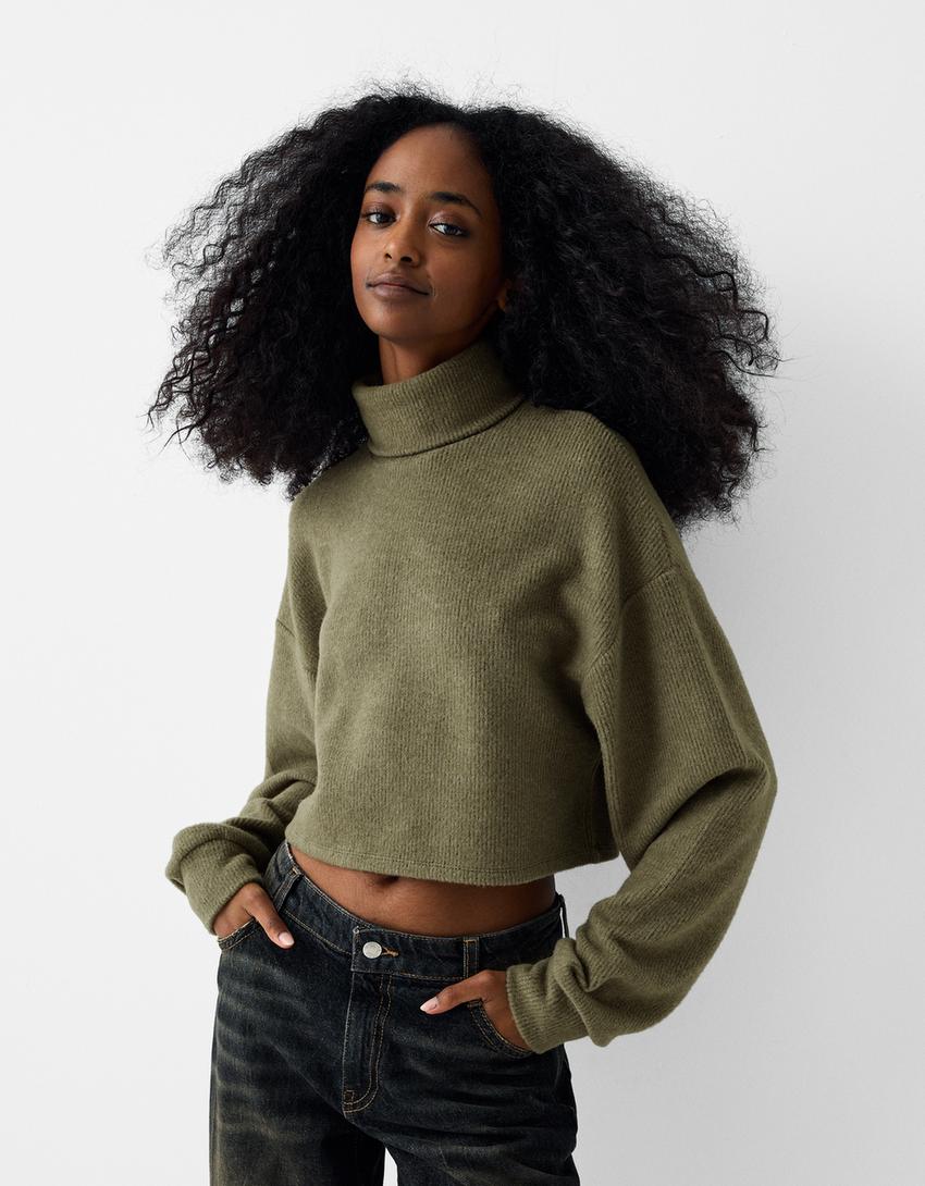 Cropped sweater with a high neck