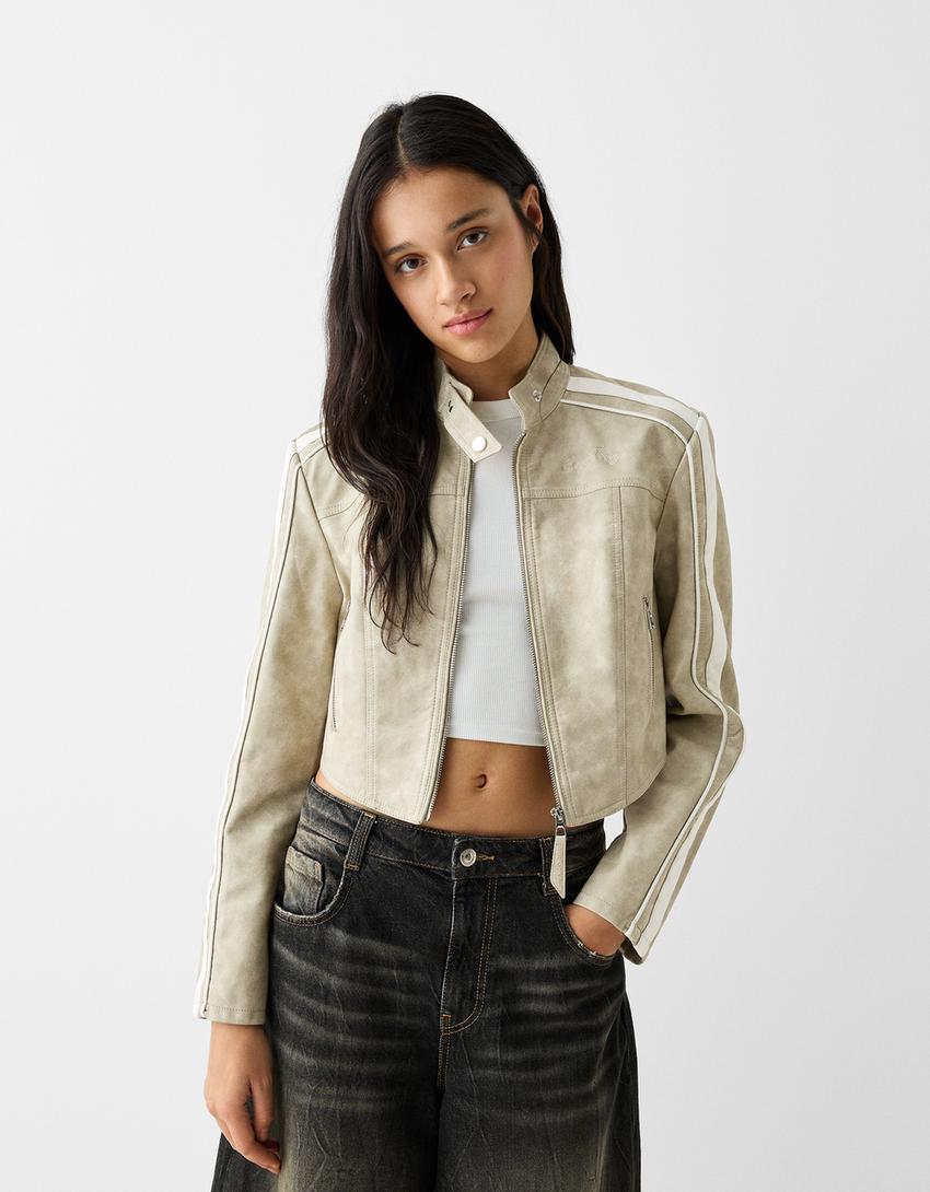 Faux leather jacket with side stripes