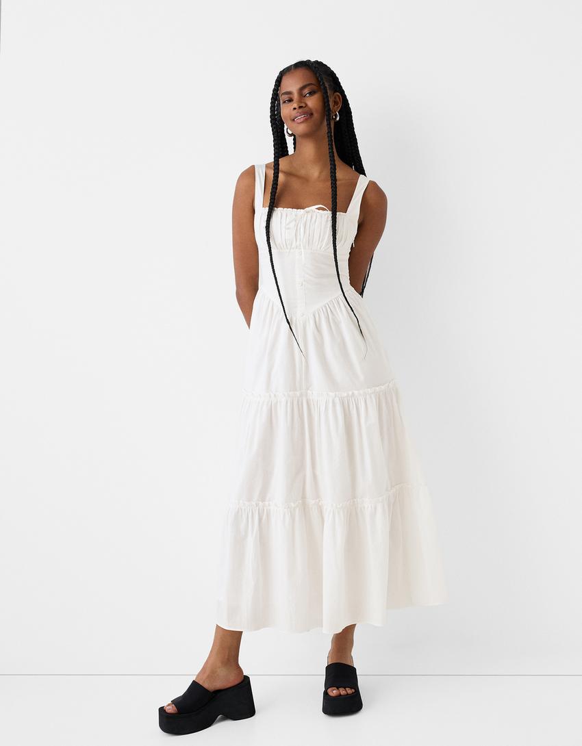 Flounce maxi dress with buttons