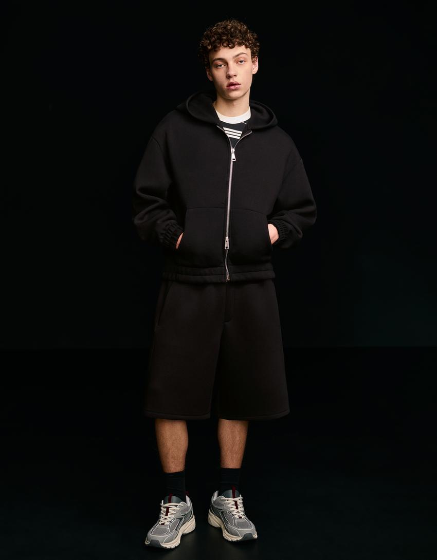 Oversize neoprene Bermuda shorts