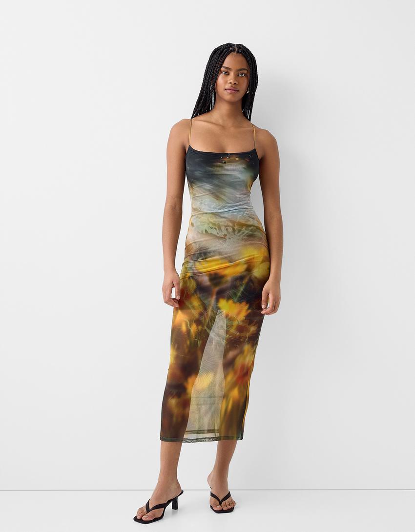 Strappy tulle midi dress