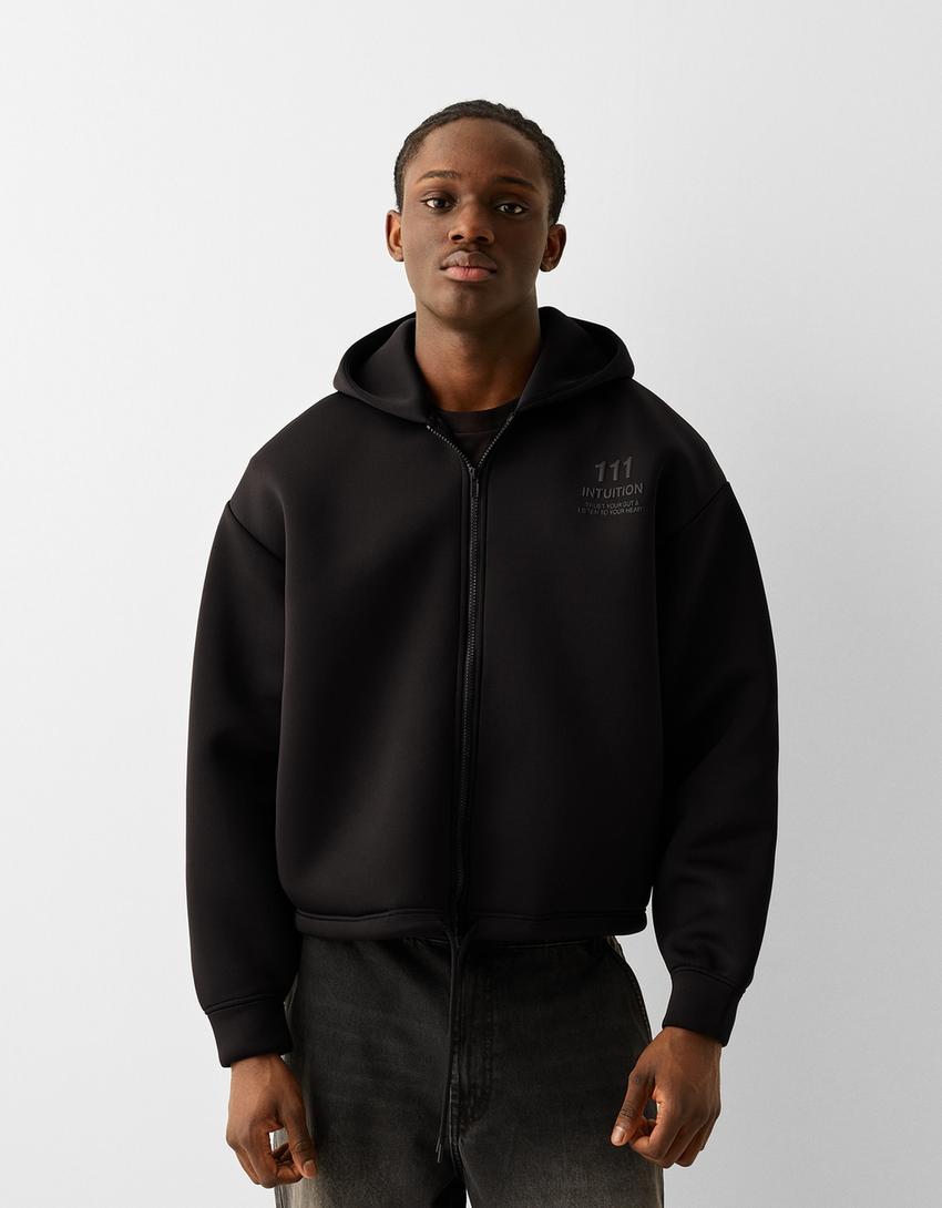 Zip-up slogan hoodie