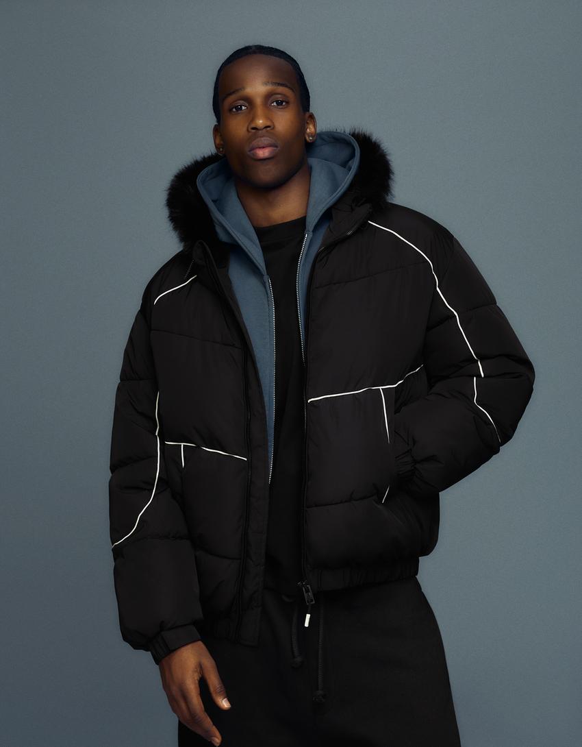 Technical jacket with faux fur hood