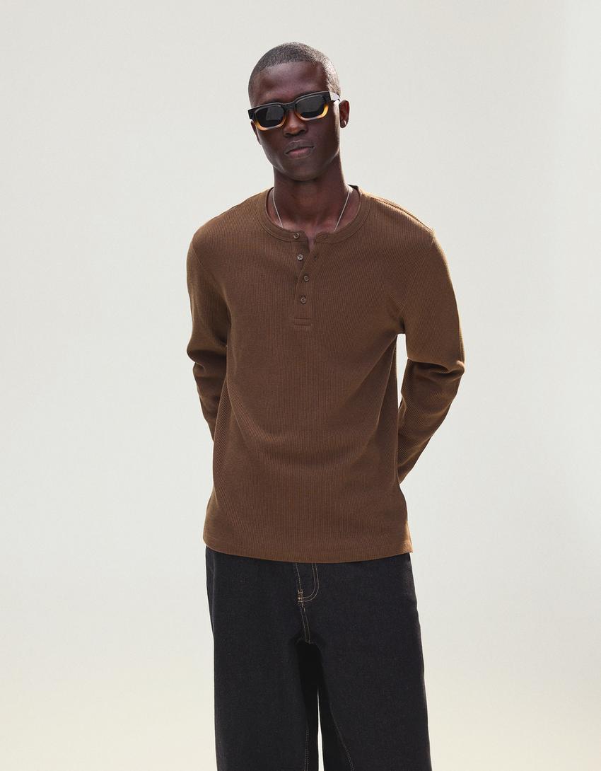 تيشرت هينلي ضيق بأكمام طويلة