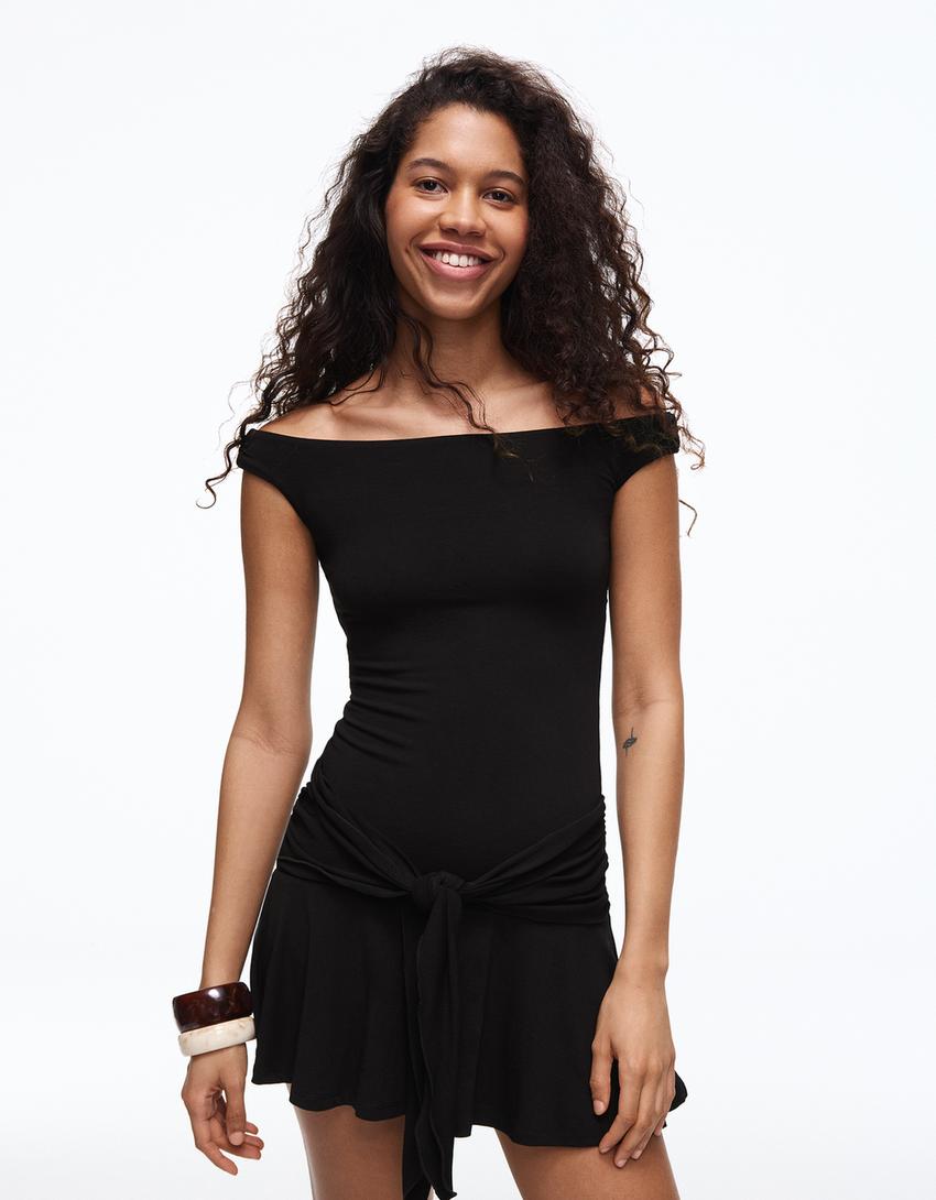 Vestido mini asimétrico volantes lazada