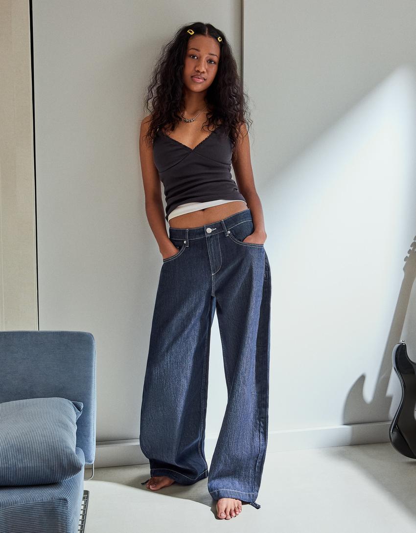 Low-rise wide-leg balloon jeans