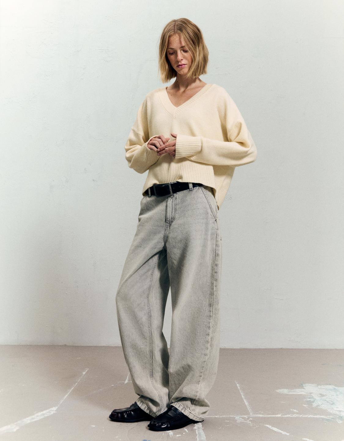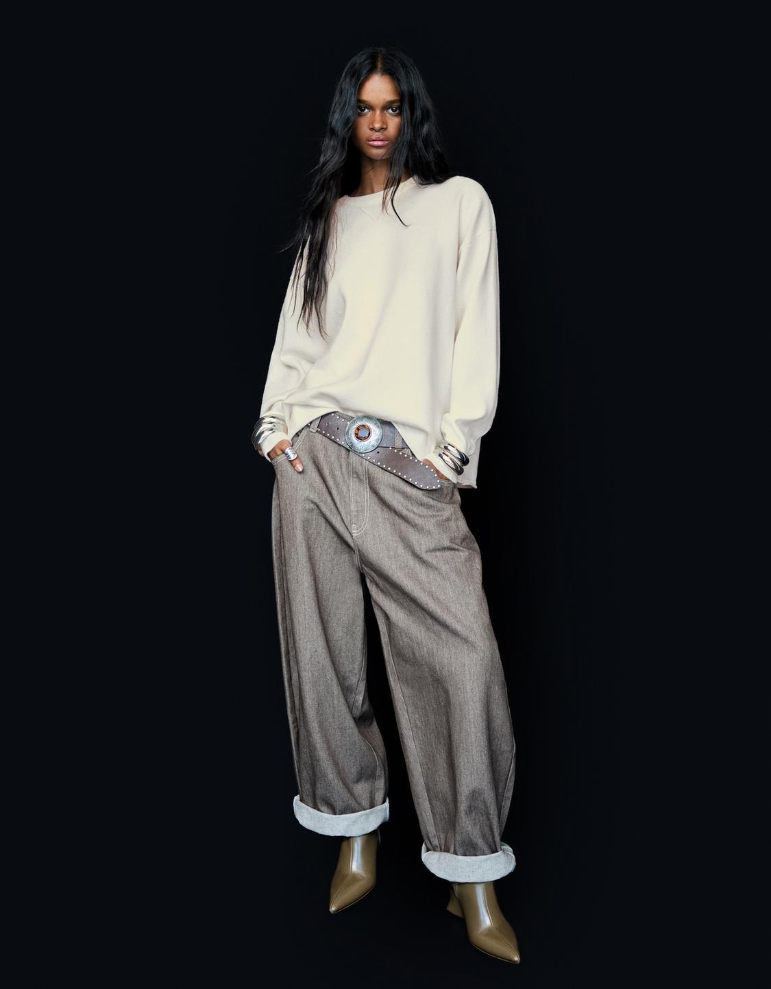 Oversize sweater with ribbed hem
