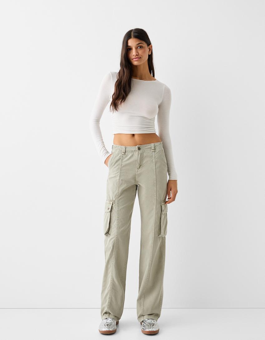 Calças straight cargo ajustáveis algodão