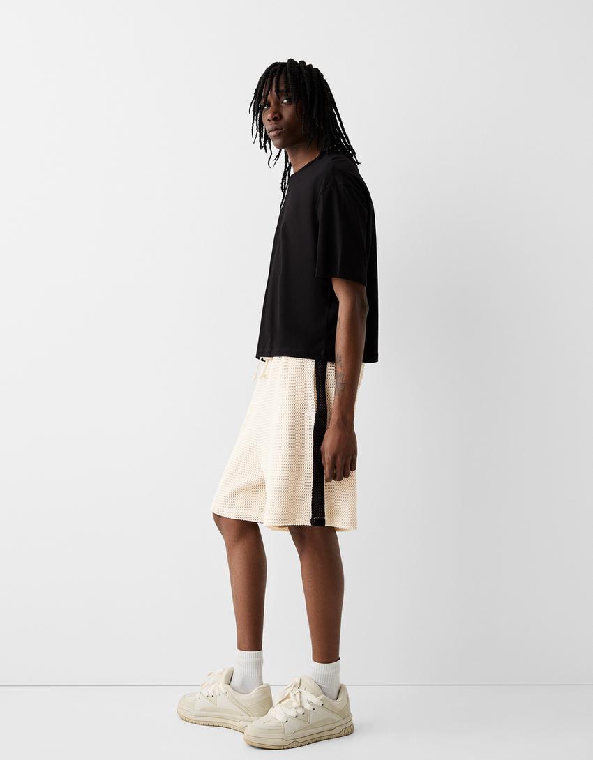 Calções bermuda rústicos faixa lateral