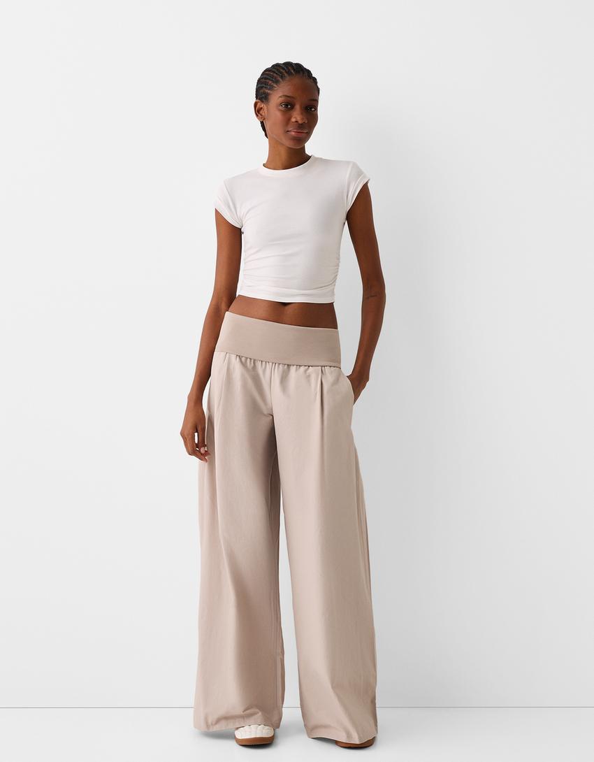 Calças wide leg cintura dobrada