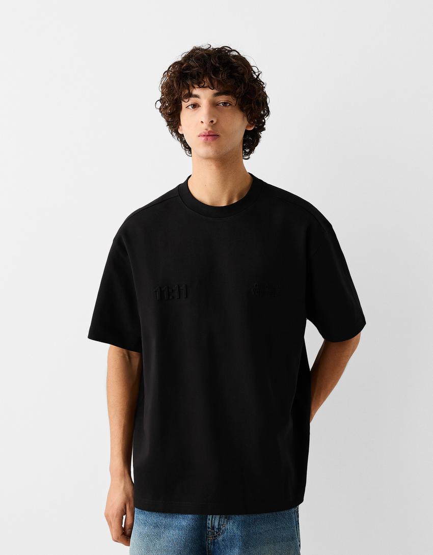 T-shirt manga curta boxy fit estampado relevo