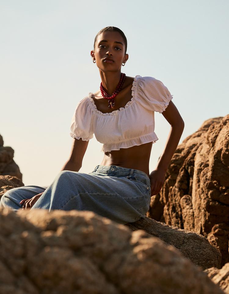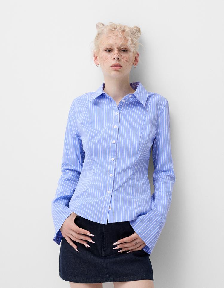 Fitted shirt with flared sleeves