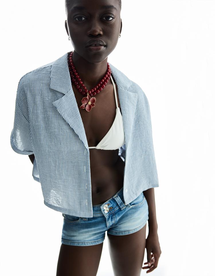 Gathered short sleeve shirt with tie detail
