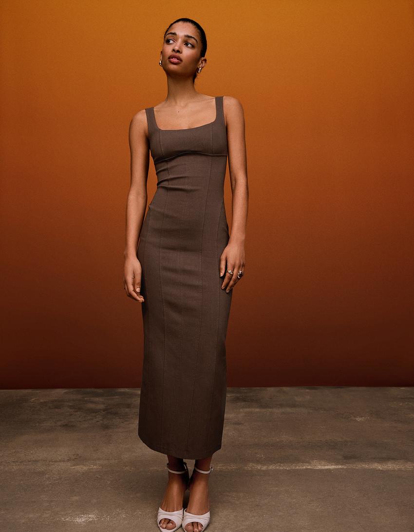 Bengaline strappy midi dress