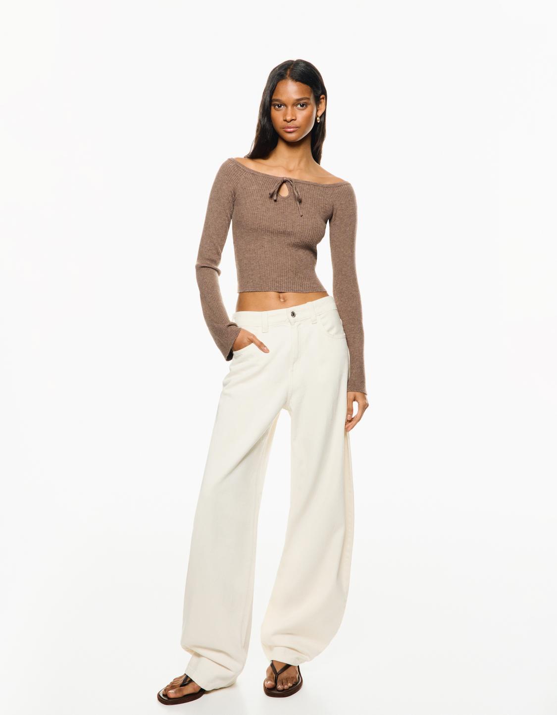 Ribbad tröja med båtringning