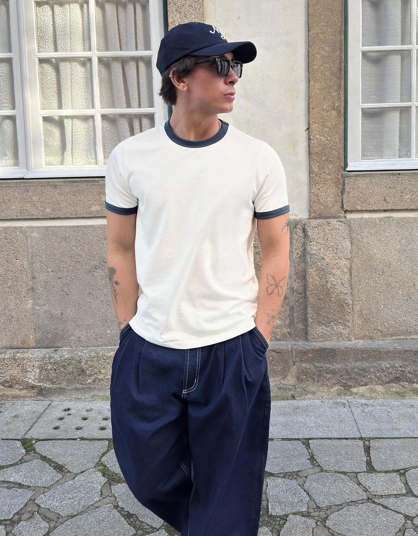 T-shirt manches courtes côtelé contrastant