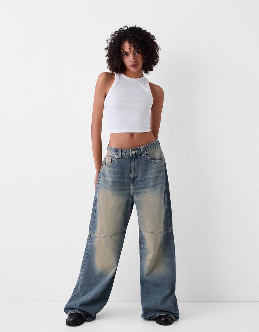 Mega baggy işlemeli jean