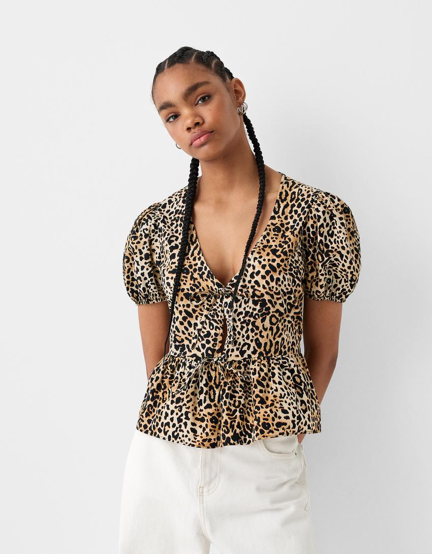 Fiyonk detaylı kısa kollu gömlek