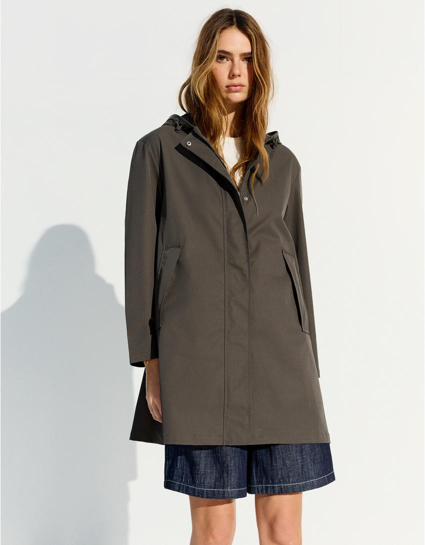 Kapüşonlu su ve rüzgar geçirmez trençkot