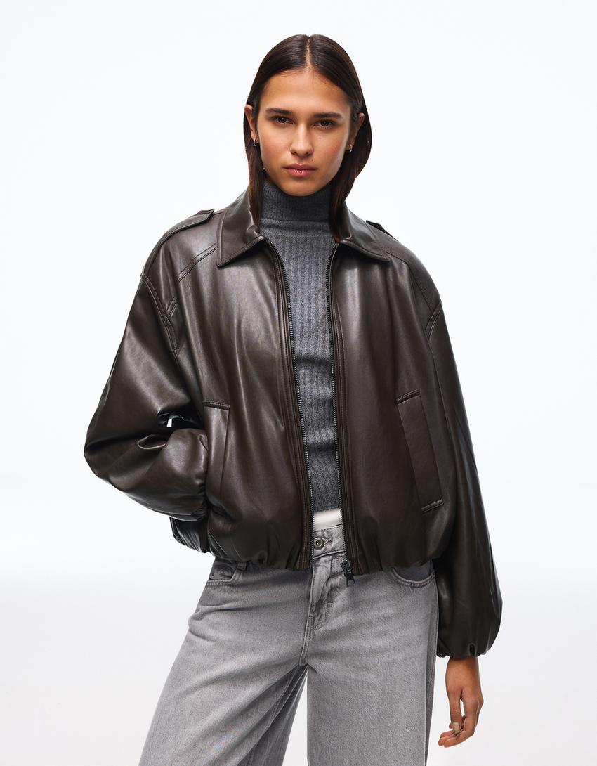 Balloon faux leather jacket