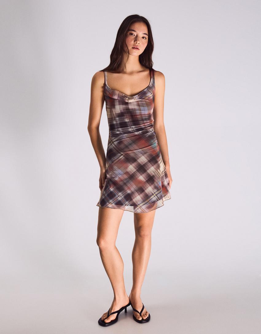 Check tulle mini dress